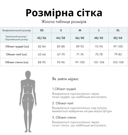 - Розміри: 42(S),44(M),46(L).